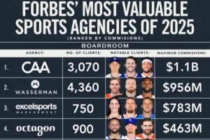 与此同时,Wasserman、Excel和Klutch缩小了差距,通过显著的佣金增长和有针对性的收购不断扩张。如今,大多数顶级经纪公司都有私人投资者背景,并向 大学NIL、教练业务和国际市场拓展。