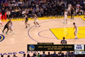 比赛第四节双方双方比分紧咬,转播方晒出一组数据:勇士近3个赛季有109场比赛打到关键时刻(含本场),为联盟最多!