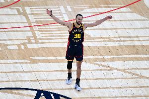 本场比赛,库里低开高走,上半场7分,第三节13分、第四节15分,加时赛7分,末节和加时连续关键球,带领球队完成14分大逆转!