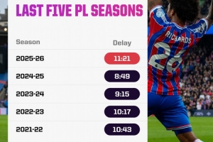 体育资讯10月30日讯 Opta数据显示,本赛季英超等待掷界外球的平均时间为11.21秒,近5年最久。