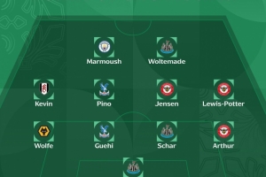 后卫:沃尔费(狼队)、格伊(水晶宫)、沙尔(纽卡)、亚瑟(布伦特福德)