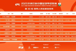 中甲第30轮裁判具体安排如下(详情见图):