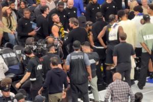 队记Anthony Slater晒出视频表示,库里在末节下半段一直一瘸一拐,医学主管Rick Celebrini与他交流许久,最后直接叫他离场。