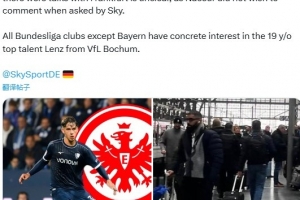 本周四,伦茨的经纪人马克拉姆·纳赛尔出现在法兰克福,但是否与法兰克福进行了会谈尚不清楚,因为纳赛尔在接受天空体育采访时拒绝发表评论。除了拜仁之外,所有德甲俱乐部都对这位来自波鸿的年轻天才表示了浓厚的兴趣。