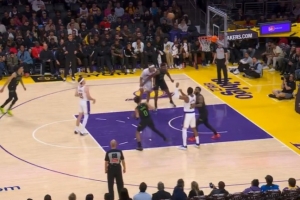 GIF-费尔斯在罚球线耍小动作 八村塁回头怒推