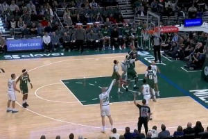 GIF-凯尔特人主将们在替补席满脸难看,杰伦·布朗挨个击掌鼓励