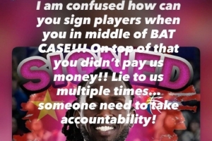 马里奇晒出一张四川男篮签下新外援的相关图片,并在图片中写道:“我很困惑,你们怎么能在处于破产边缘时还能签球员?此外,你们还没付我们拖欠的薪水!多次欺骗我们……有人需要出来负责。”